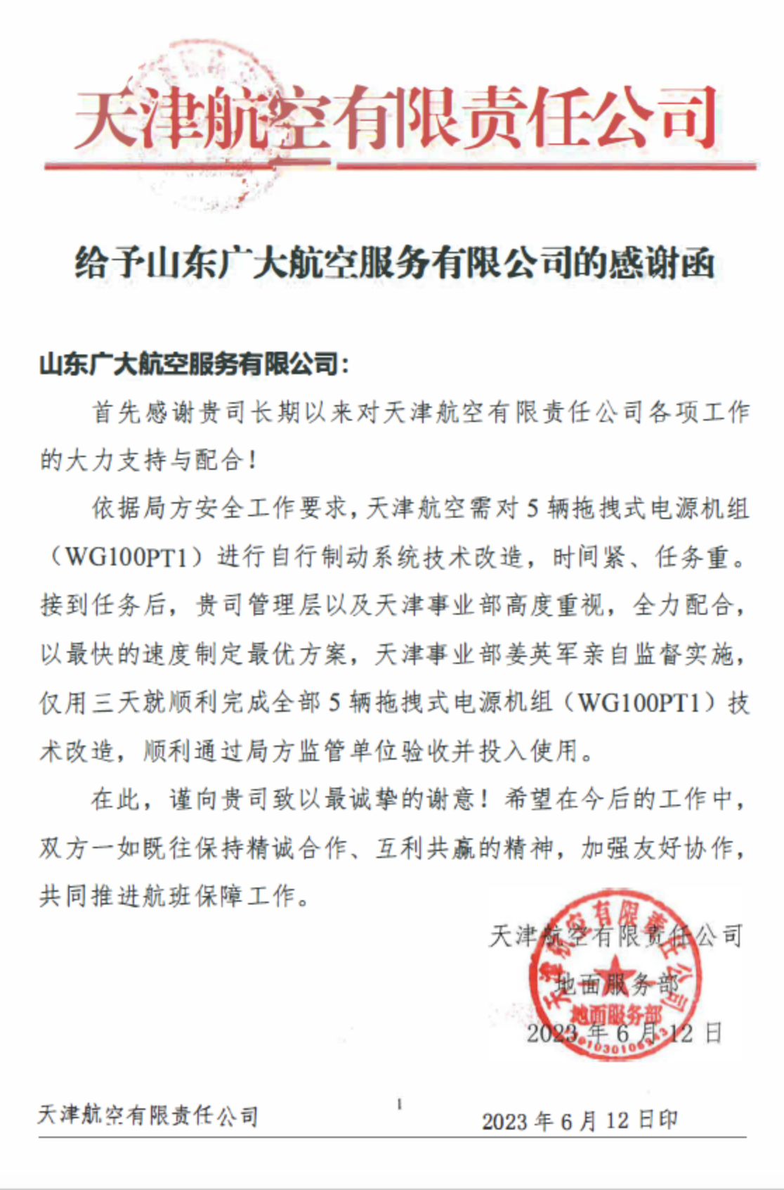 6月初,天津航空公司根據局方安全管理要求對五臺電源機組進行自行制動系統技術改造,改造時需對五臺電源機組停用??蛻舯硎具@五臺機組是主力車型,全部停用會影響正常工作,希望以最快的速度,最短的時間完成改造。時間緊任務重,山東廣大航空服務有限公司(以下簡稱“廣大航服”)…