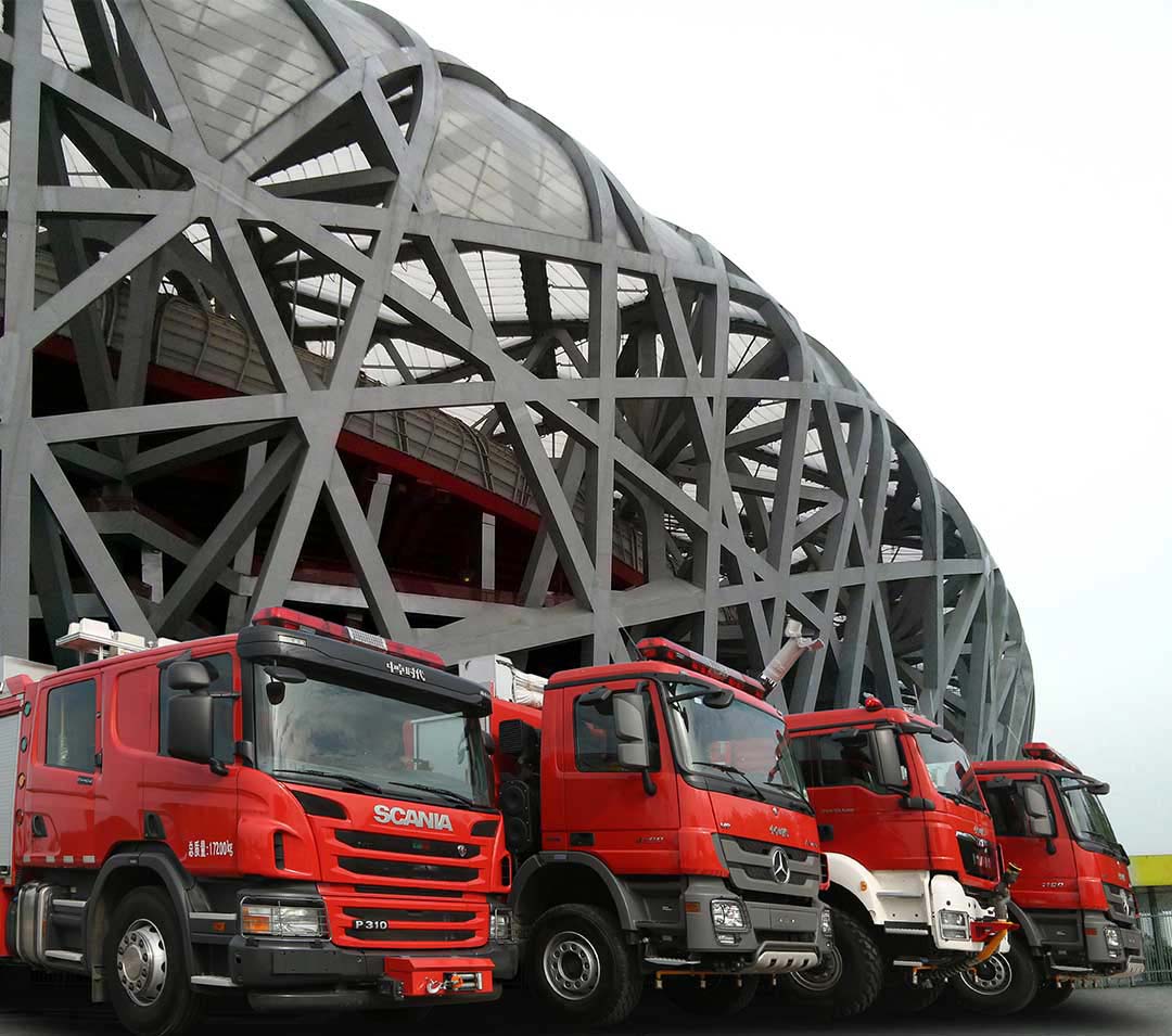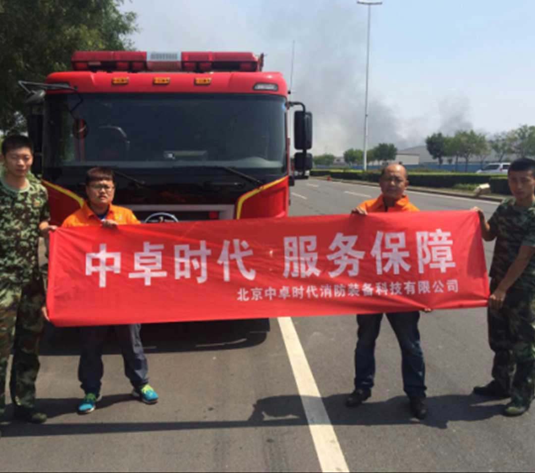 2015年8月12日,公司消防車在天津?yàn)I海新區(qū)危險(xiǎn)品倉庫爆炸現(xiàn)場(chǎng)